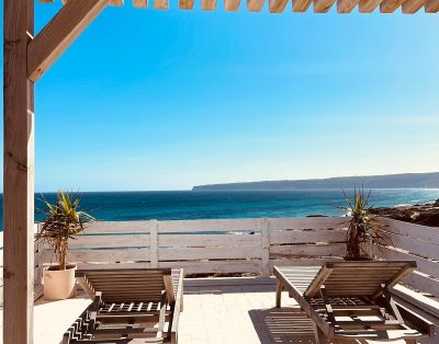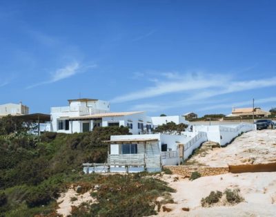 Cala En Baster is located along the north coast of Formentera, between the beaches of Racó des Cans and Platja de Tramuntana, about one kilometer from the urban center of Sant Ferran de ses Roques.