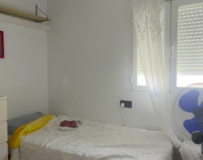 One of the bedrooms has access to a small, separate laundry area, adding extra functionality to the property. The apartment also includes a balcony facing the entrance of the building, perfect for enjoying fresh air and natural light.