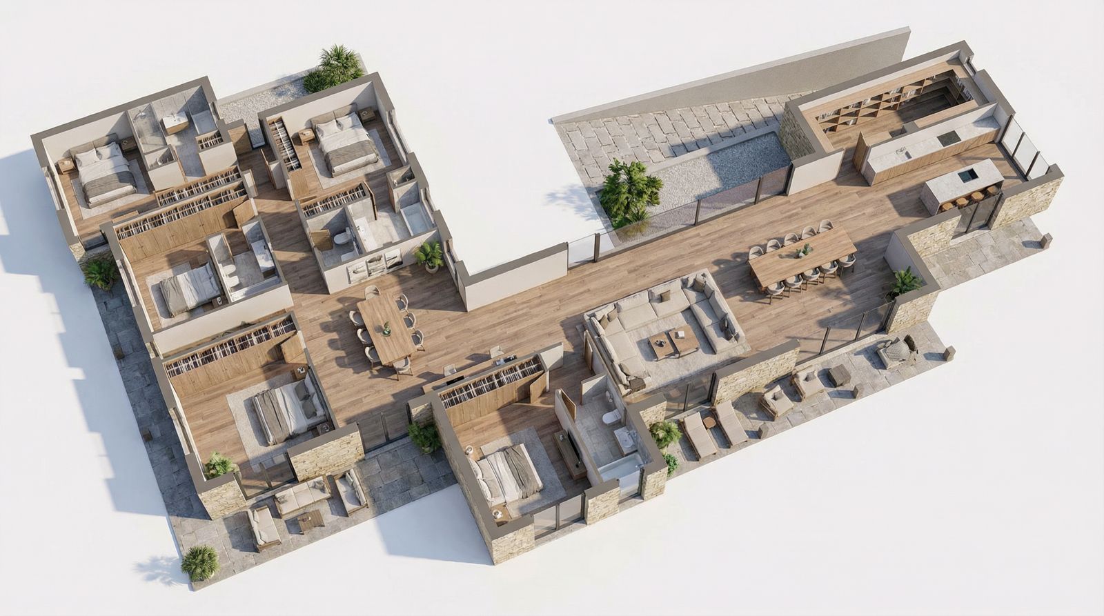 — Five spacious bedrooms, designed to provide the highest level of comfort