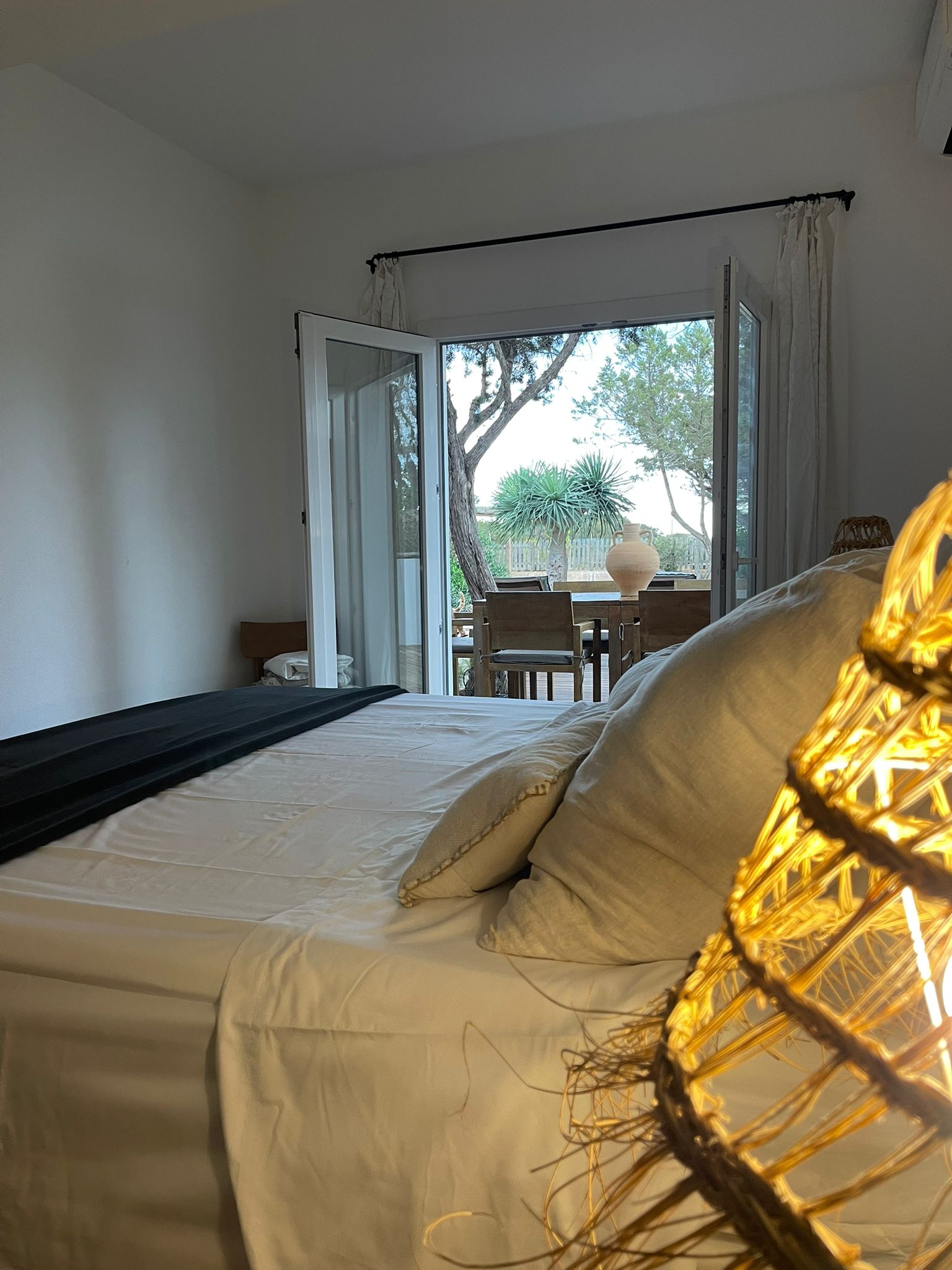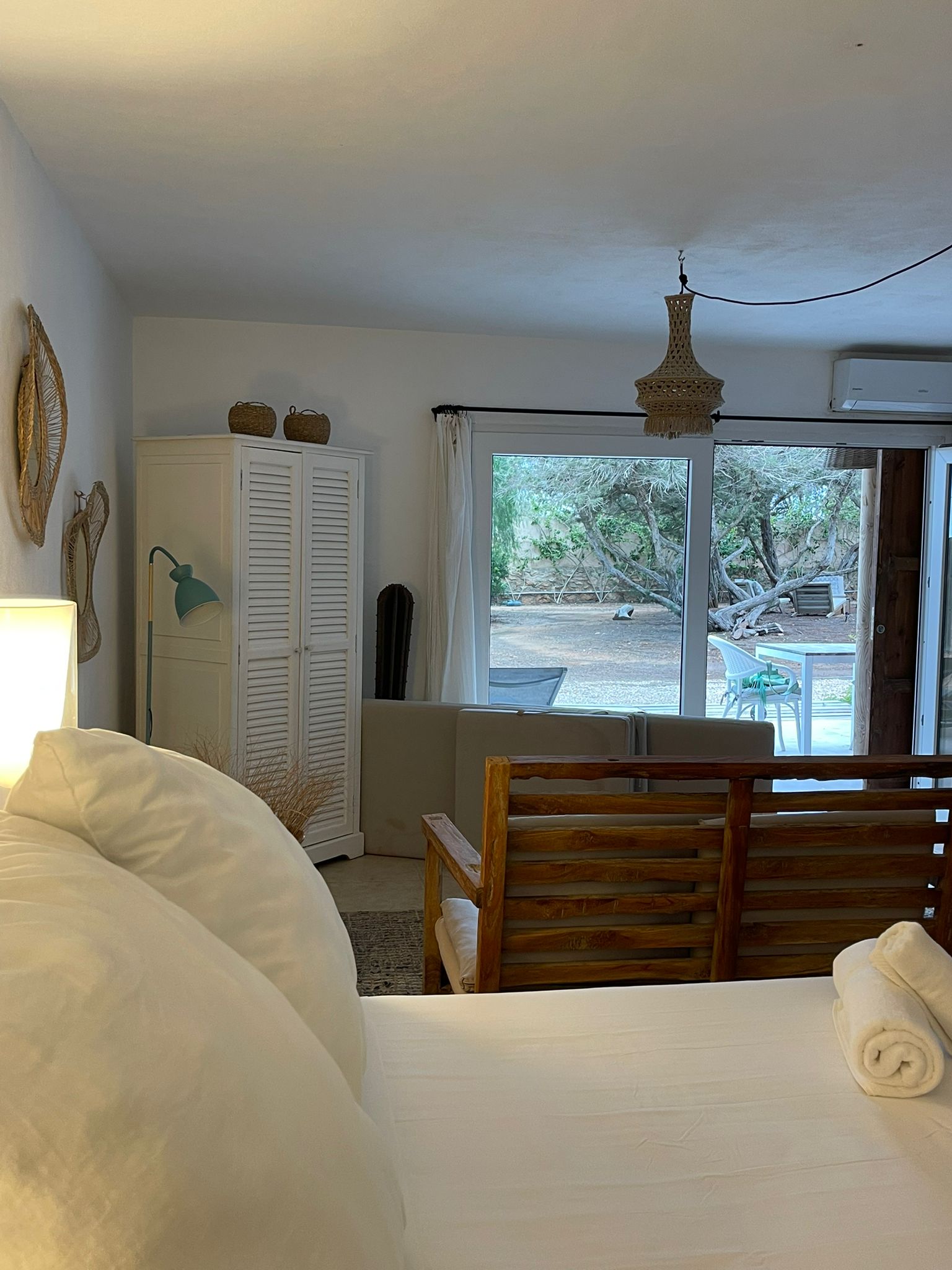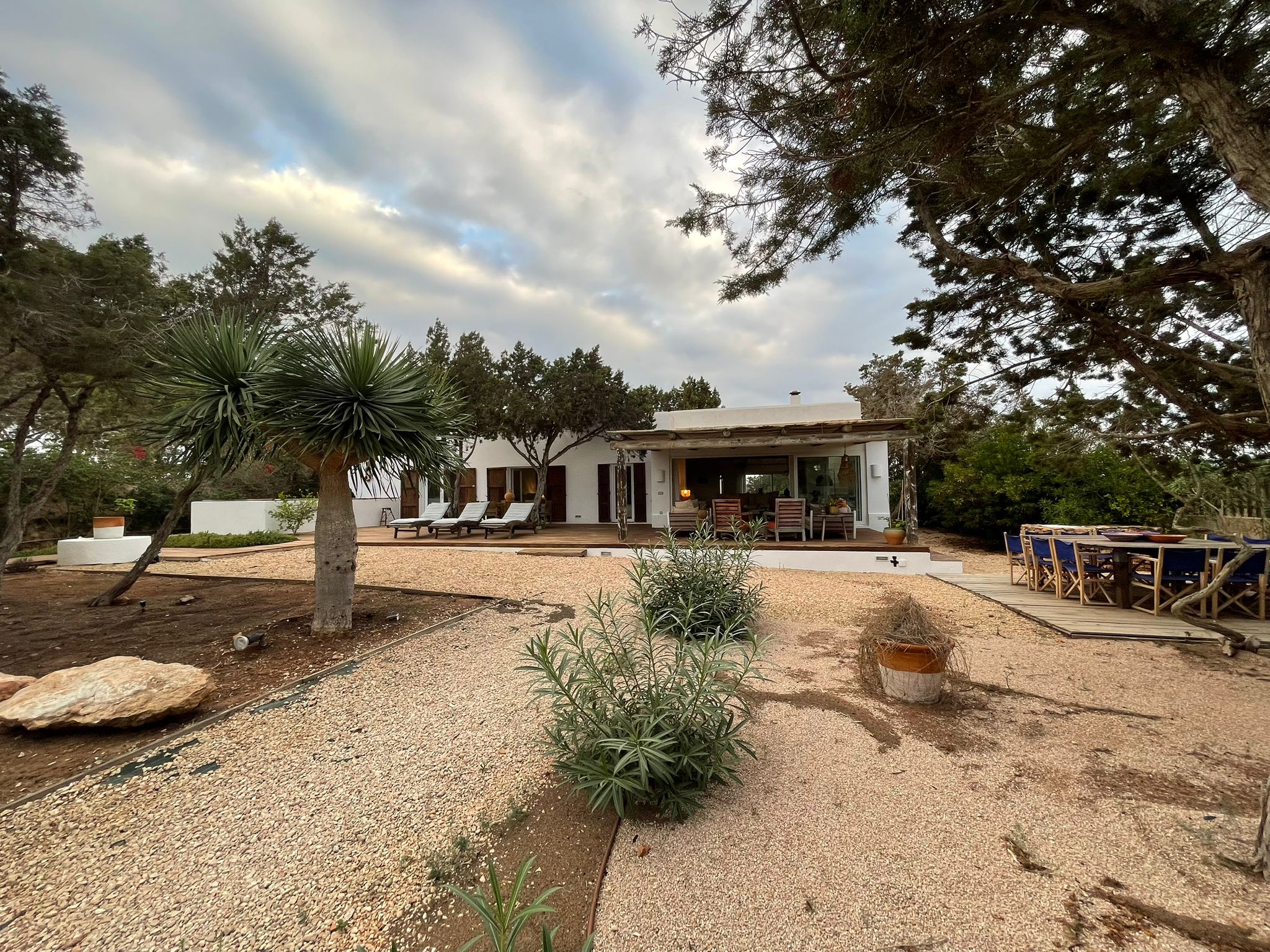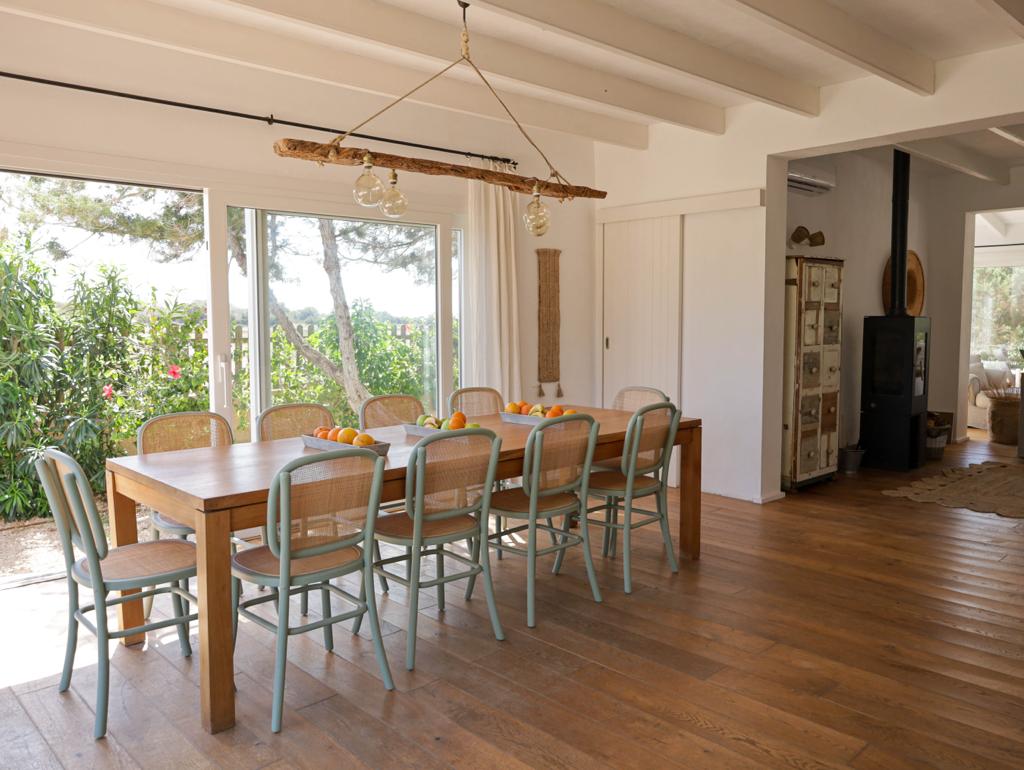 The villa’s prime position near Playa de Mitjorn means the beach, restaurants, and beach clubs are all within easy walking distance (just 5 minutes). Yet, once inside the property, you are surrounded by nature and total privacy – the best of both worlds.