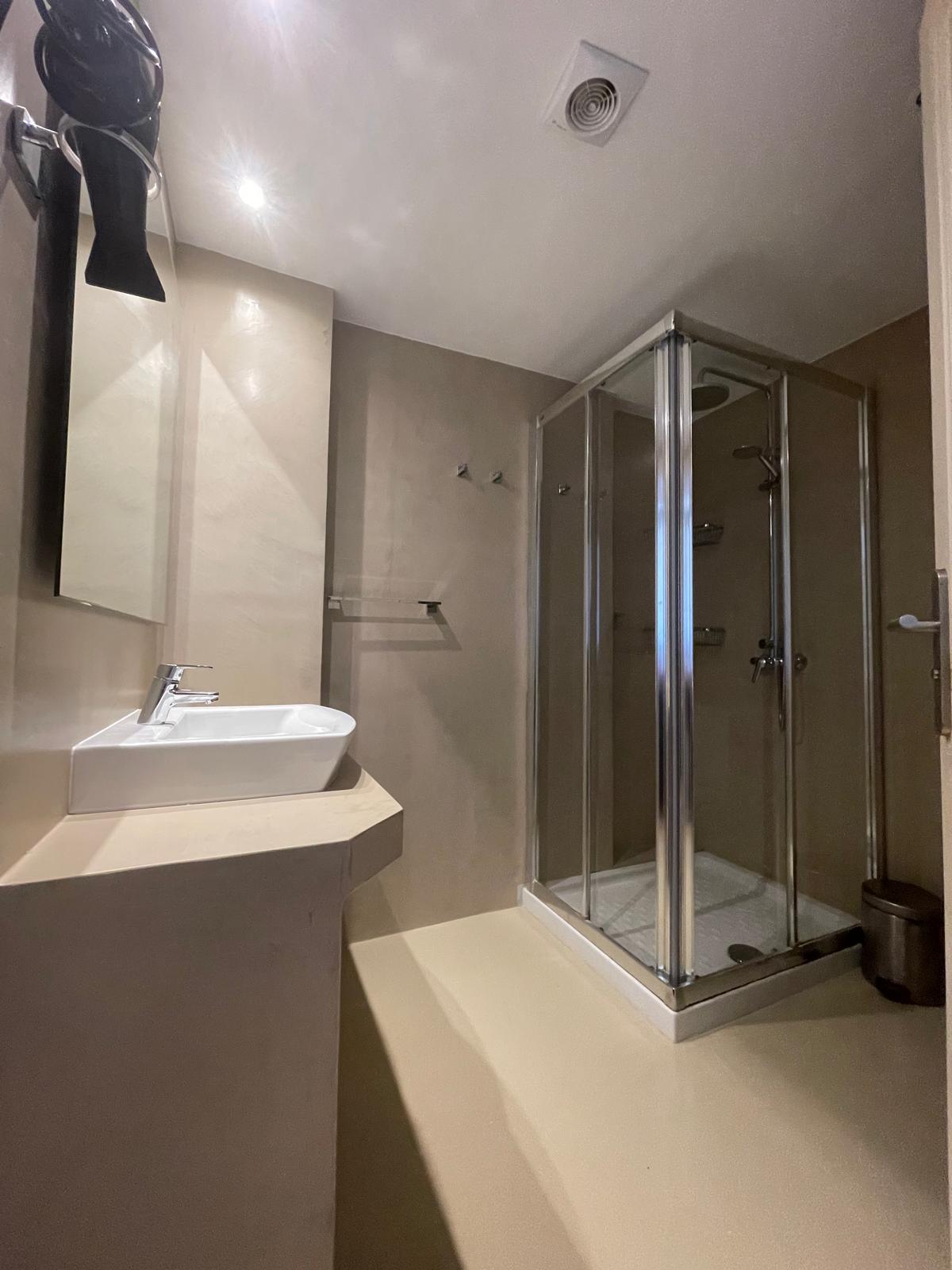 La planta principal cuenta con una luminosa zona de estar y comedor de concepto abierto con cocina funcional, diseñada cuidadosamente para maximizar el espacio y la entrada de luz natural. En esta planta se encuentra también un amplio dormitorio doble con armarios empotrados y un baño completo, ideal para invitados o como espacio flexible de uso diario.