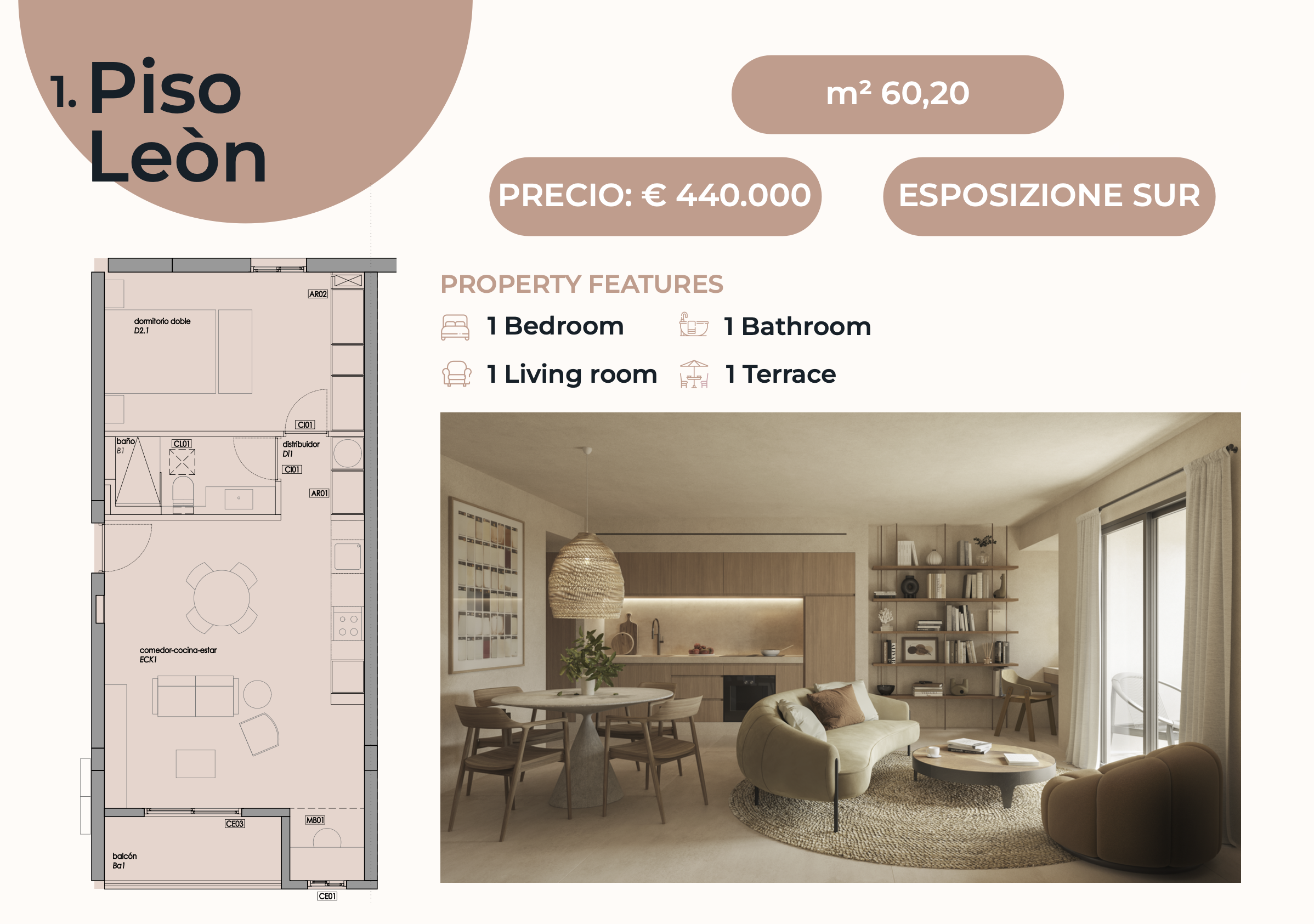 Con una superficie aproximada de 60 m² perfectamente optimizados, el apartamento destaca por su excelente distribución y luminosidad. Dispone de un amplio dormitorio doble, un baño completo de diseño contemporáneo y una agradable zona de salón-comedor con cocina integrada, concebida para ofrecer un ambiente moderno, funcional y acogedor.