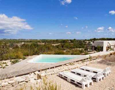En la zona de Es Cap de Barbaría se encuentra rodeada y escondida entre los pinos esta villa única de cuatro dormitorios y cuatro baños. En el exterior, encontramos una maravillosa piscina con varias zonas solarium y chill out.