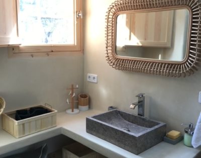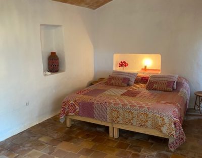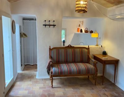 En la casa principal, hay un dormitorio doble con un baño muy amplio y luminoso, un salón con chimenea, cocina totalmente equipada y un altillo abierto que puede utilizarse como segunda habitación.
