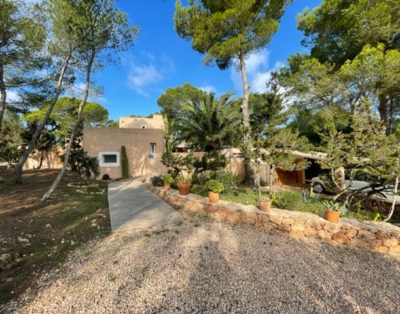 Se accede a la casa a través de un camino de tierra típico de la isla, lo que realza su encanto natural y entorno tranquilo.